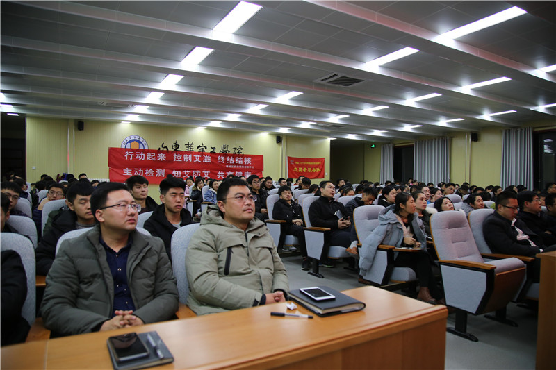 讲座邀请德州市疾控中心副主任、山东省艾滋病防治协会高校分会副主任委员王壮业担任主讲。王主任从艾滋病的基本概念、流行情况、艾滋病的危害以及艾滋病的预防措施等进行了详细介绍。通过大量的图表、真实的案例以及直观的图片,让在座师生对我国艾滋病病情流行概况和发展趋势有所了解。王主任强调,艾滋病虽然是一种危害极大的传染病,但还是“可防、可控、可治”,同时希望大学生洁身自好,珍爱生命,远离艾滋病。