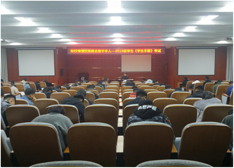 本次《学生手册》考试是督促2018级新同学将《学生手册》相关内容内化于心、外化于行的有效措施。通过本次考试加强了新生对大学生活的了解,帮助新生更快地融入到大学生活,更好的遵循学校的规章制度,在未来的学习生活中奋发进取,成为一名合格的大学生。