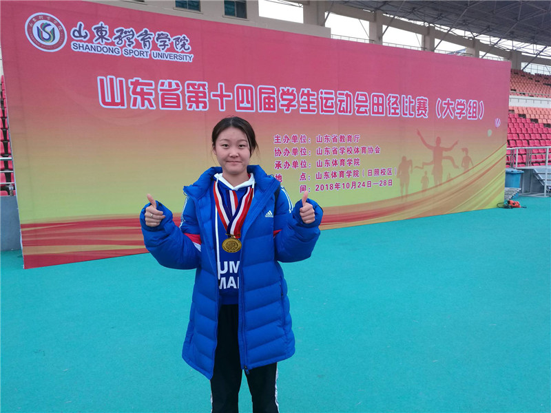 本届大学生运动会,我校共派出11名运动员代表我校参加比赛,选手们发扬顽强拼搏、不畏挑战,突破自我、团结协作的体育精神,勇创佳绩。本届大学生运动会上,刘玉凤同学除了摘得大学生跳远比赛金牌,还以13.66秒成绩,获得大学生女子100米甲组(本科普通学生组)第四名;梁宇同学以6.34米的成绩获得男子跳远甲组第四名;朱培香同学获得女子标枪甲组第八名的优异成绩,实现了我校在历届山东省大学生运动会参赛项目上的新的突破。