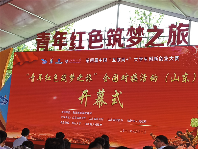 6月30日-7月1日,由山东省教育厅、山东省农业厅、山东省扶贫办和临沂市人民政府主办的第四届中国互联网+大学生创新创业大赛“青年红色筑梦之旅”全国现场对接活动(山东)在沂南县沂蒙红嫂纪念馆广场举行,我校创新创业学院组织团队参加了项目对接活动。活动中,我校万“柿”如意扶贫项目与沂南县大庄镇官庄社区现场对接签约,并达成合作意向。来自全国164所大学的206支项目团队齐聚革命老区,传承红色基因,服务乡村振兴、助力扶贫脱贫。