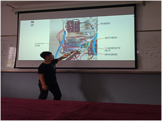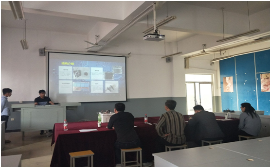本次竞赛收到学生作品93件,来自电子信息工程学院、电气工程学院、机械工程学院和继续教育学院300余位学生参赛。竞赛共设两个分赛场,分别邀请各学院专业教师和教授组成评委团,对学生的创意作品进行点评、打分。比赛分为作品讲解、实物演示、专家点评三个环节。继续教育学院于智超等同学的桌面型激光雕刻机(自制实物)、电子信息工程学院董婉玉等同学的微信公众号辅助学习、电气工程学院张怀震等同学的基于物联网智能垃圾桶、机械工程学院姜洁等同学的卫水战士(水面垃圾清理机器人)等作品受到了评委和在场师生的一致好评。
