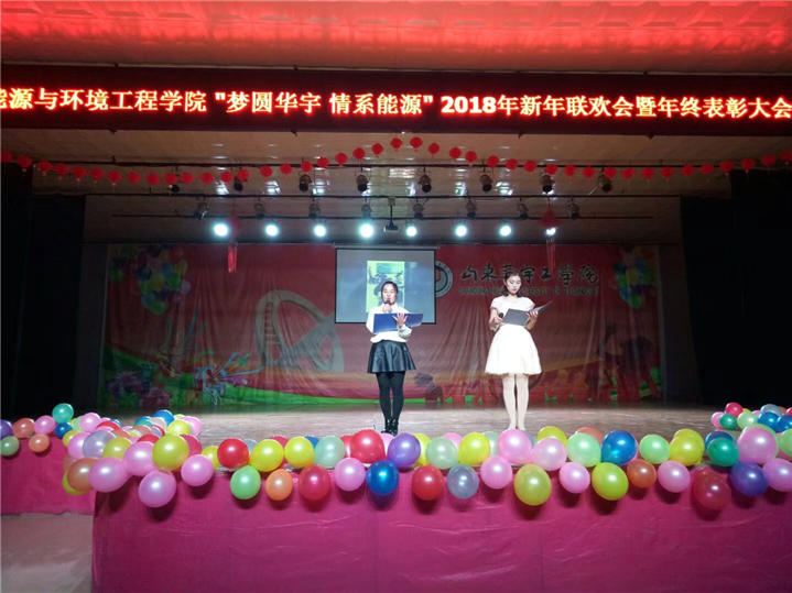 近日,能源与环境工程学院“梦圆华宇·情系能源” 2018新年联欢会暨年终表彰大会在大学生活动中心三馆隆重举行,能源与环境工程学院院长张风合,教学院长魏丰君,学管院长闫克信,实验实训中心副主任张妍妍,教学科长王燕,学生管理科科长赵立艳,制冷教研室主任相培,建环教研室主任刘春花,学生干事任秋燕,及我院授课老师、辅导员老师、我院全体学生出席了本次联欢会暨年终表彰大会。