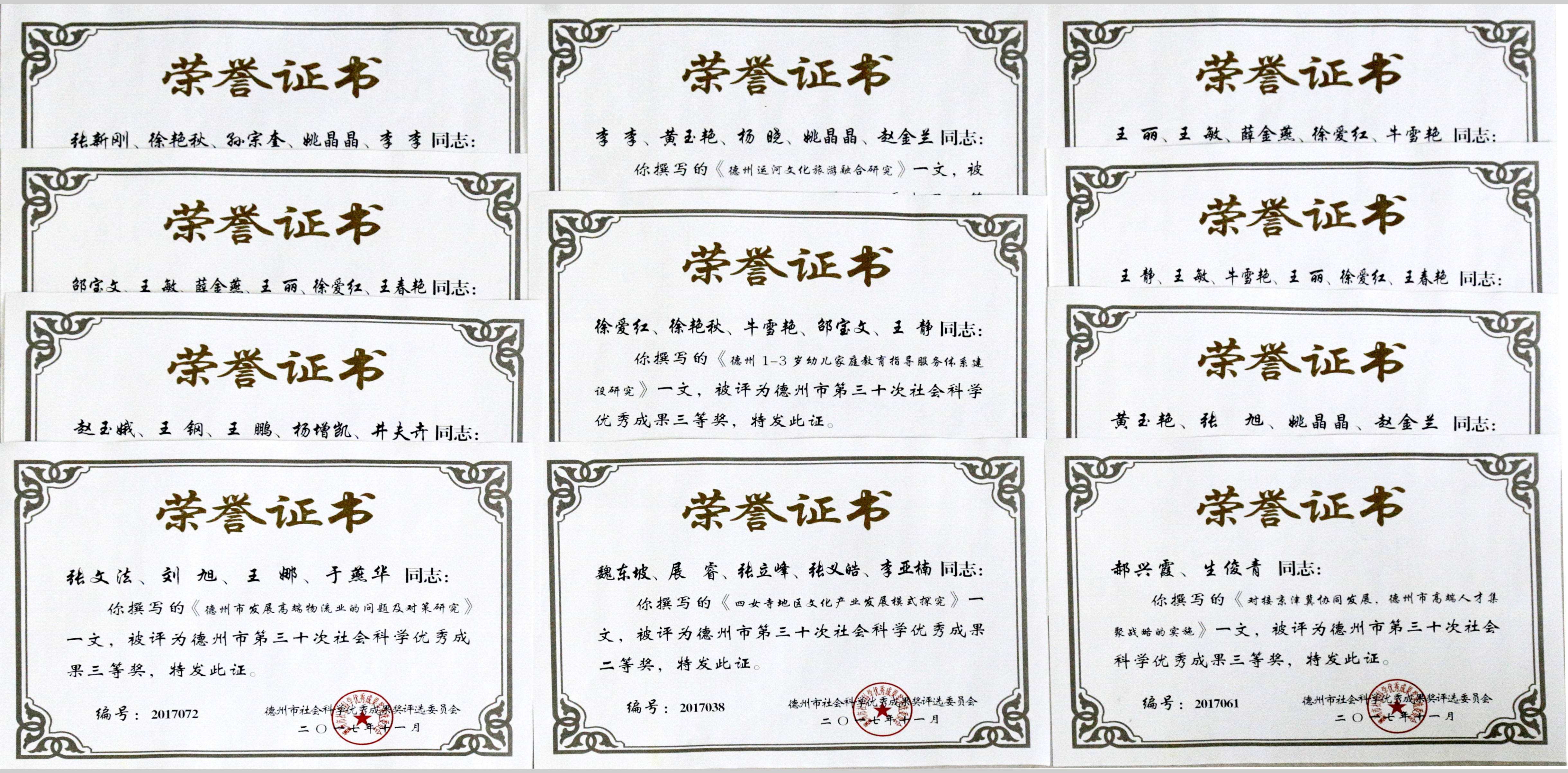 近日,德州市第三十次社会科学优秀成果奖评选结果公布,我校在此次评选活动中喜获佳绩。学校组织报送参评成果16项,获奖成果11项。其中魏东坡副教授的研究报告《四女寺地区文化产业发展模式探究》获得应用研究类成果二等奖。思想政治理论课教学部张新刚老师、经济管理学院郝兴霞老师等10位老师的成果获得应用研究类成果三等奖。