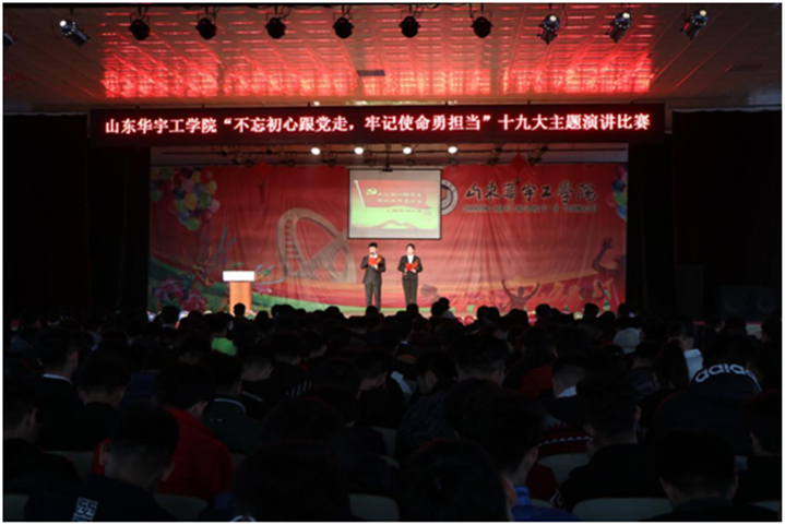 此次比赛学生积极参与,经过二级学院初赛、学校复赛的层层选拔,最终有12 名选手进入决赛。演讲比赛现场气氛热烈,选手们围绕党的十九大精神,结合自身的体会,用真诚的语言讴歌党的光辉历程,抒发对党的深情,表达坚定不移跟党走的决心。声情并茂、发自肺腑的演讲紧扣主题、层次清晰,展示了华宇学子紧跟时代砥砺前行,担当责任奋发有为的精神风貌。