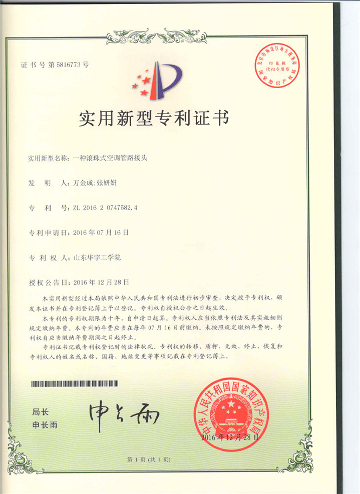 文化节期间,能源与环境工程学院实验实训中心教学副主任张妍妍获悉比赛信息后,积极联系万金成,申报“一种滚珠式空调管路接头”实用新型专利,万金成在张老师的指导下,把创新思路形成了具体的图纸和方案,经过反复修改后提交大赛组委会,最终取得全省三等奖的优异成绩。