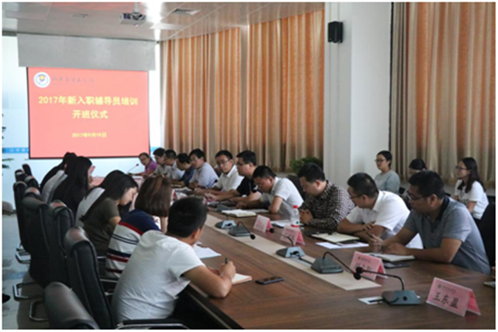 为贯彻落实《普通高等学校辅导员培训规划(2013-2017年)》等文件精神,按照学校教师发展中心的工作安排,结合“辅导员如何带好一个班”工作要求,使新入职辅导员深入认识辅导员角色、准确定位,更好地投入学生教育管理工作。2017年9月15日至9月25日,对2017年秋季新入职辅导员进行了为期10天的培训。