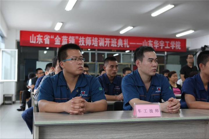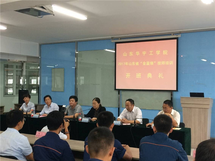 8月29日下午,我校2017年“金蓝领”焊工高级技师,焊工、车工技师培训班开学典礼在景津集团举行,德州市人社局副局长贾丽君,职业能力建设科科长范鑫,以及德州景津集团党委书记高俊荣和我校副校长夏传波出席了开学典礼,工程训练中心潘炳木主任主持,来自景津集团、中国水利水电第十三工程局有限公司、徳工集团、德州亚太集团等企业单位的一线职工和我校的部分青年教师等90名学员参加了本次活动。