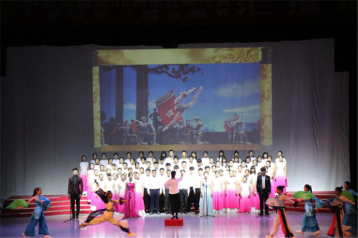 各代表队以饱满的热情,唱出慷慨激昂、气势恢宏的红色旋律;以细腻柔和、宛转悠扬的音律,唱出对祖国、对党无限热爱的真挚感情。优美的演唱、饱满的热情、精心的编排和亮丽的台风赢得了观众们的阵阵掌声。电子信息工程学院演唱的《打靶归来》和《歌唱祖国》将演出推向了高潮。一曲曲铿锵有力的抗战歌曲,吟唱难忘的岁月;一首首传世流芳的红色经典,演绎时代的激越,在建筑工程学院嘹亮的《共筑中国梦》歌声中,演出落下帷幕。