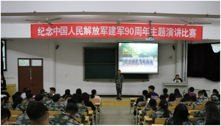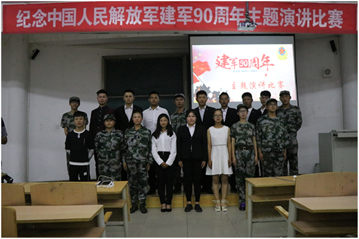 9月5日下午,由学生工作处主办的纪念中国人民解放军建军90周年主题演讲比赛在10号楼F101拉开帷幕,基础教学部、学生工作处、各二级学院评委老师及200余名学生代表参加了活动。