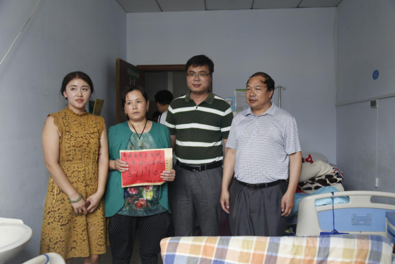 5月22日,我校学生工作处处长侯建昌、能源与环境工程学院院长张凤合、院长助理闫克信代表学校来到德州市中心医院,将全校师生募集善款合计46552.5元送到正在接受治疗的刘国朋家人手中。