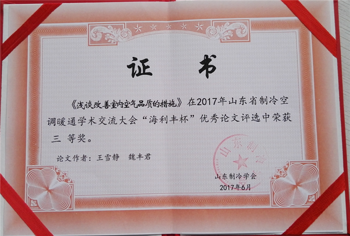 6月2日至6月4日,2017年山东省制冷空调暖通学术交流大会在东营召开。我校能源与环境工程学院院长张风合、副院长魏丰君、建环教研室主任刘春花参加了会议,戎卫国教授在会上做了关于论文审核、评定情况的总结发言。