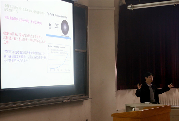 郑博士是中国石油大学计算机专业博士研究生,IT咨询专家,现任浪潮集团行业信息化技术总监。郑博士聚焦当前及未来影响中国乃至全球行业和经济发展的新兴IT趋势,运用翔实的案例、数据和统计分析图表,深入阐述了大数据、云计算和物联网的发展与应用、关键技术以及大数据在社会发展中的重要影响和作用。郑博士的报告深入浅出,精辟入里,具有很高的学术价值和现实意义,激起了与会师生强烈的求知欲,会场内掌声不断。
