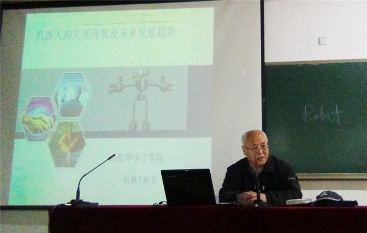 11月22日上午,由人力资源处主办,机械工程系承办的“机器人”讲座在14#101多媒体教室举行。本次讲座由机械工程系邵成吉教授主讲,全院近200名师生参与到本次活动中。讲座旨在拓宽学生的知识面,激发学生的创造力,培养学生的开放性思维,提高学生综合素质。