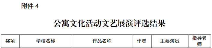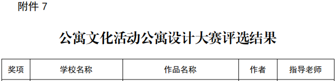 2022年高校“公寓的故事”主题系列活动由山东省教育厅主办。我校作品《赞公寓》荣获公寓文化活动文艺展演一等奖;作品《公寓设计》荣获公寓文化活动公寓设计大赛一等奖;工作案例《小环境里面的“大麻烦”—记一例高校宿舍矛盾处理案例》和《从“摆烂”到“内卷”,点亮理想的灯 照亮前行的路》,在公寓育人工作案例评选中分别荣获二等奖、三等奖;作品《养成教育进公寓,五育并举促成长》,在公寓育人精品课评选中荣获三等奖。