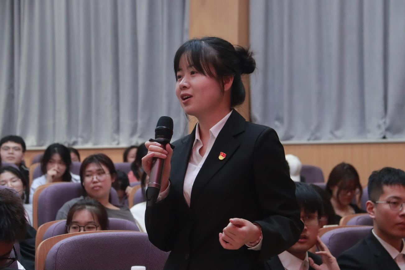 本次考研分享会邀请了8名考研成功学生代表,分别从考研经历、如何择校、如何备考以及公共科目、专业科目复习等方面进行了分享。在交流环节,同学们针对考研准备和复习过程中常见的问题进行了现场提问,考研成功学生代表进行了详细解答,现场气氛活跃,互动积极,反应热烈,同学们纷纷表示学长学姐们的分享干货满满,受益匪浅。