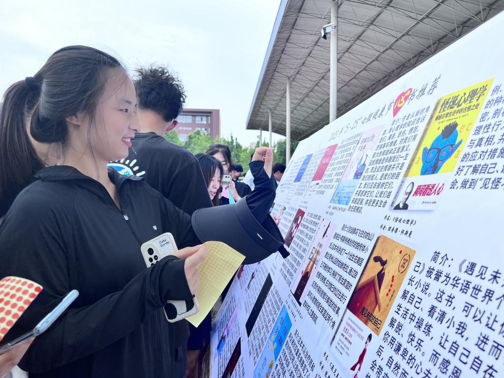 本次“5·25”心理健康节校园宣传日活动现场设有“罗夏墨迹”心理测试体验区、“OH卡”心理测试体验区、互动区域和文体活动区,由专业心理教师和朋辈心理辅导员为现场参与活动的同学舒压解困,提高学生的自我认知,通过“心”书推荐、“交换祝福”“5·25幸福打卡”、手绘“心”声等互动,让学生拓展知识视野、表达内心情感、传递爱的能量。家校共同录制的“我想对你说”视频,让学生们感受到老师和家长的祝福与关爱。