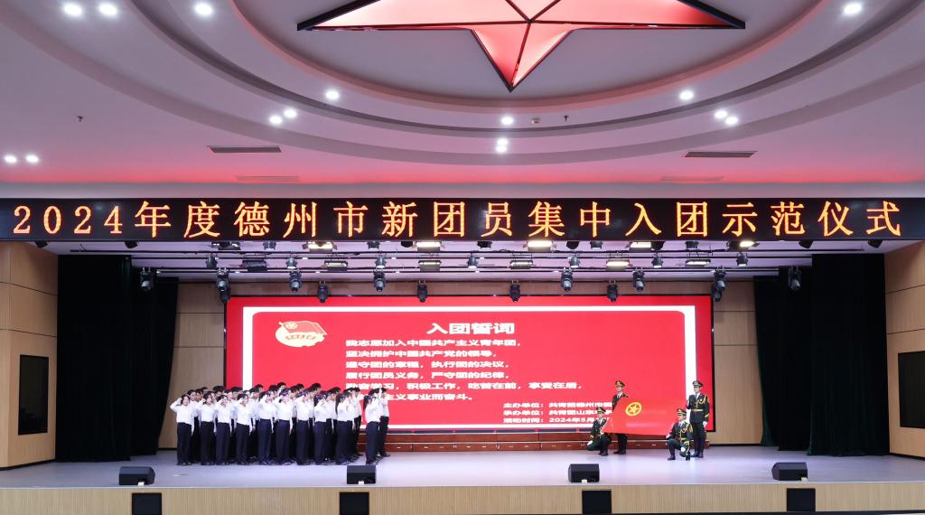 为切实加强青年学生思想政治引领,增强共青团员的光荣感、使命感,5月17日下午,我校在大学生活动中心三馆举行了2024年度德州市新团员集中入团示范仪式。学校团委负责同志、各二级学院团总支书记、新入团团员、团干部及团员代表700余人参加了入团仪式。