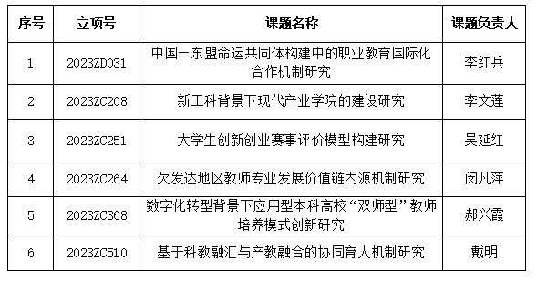 近日,山东省教育科学规划领导小组办公室发布了《关于2023年度山东省教育科学“十四五”规划课题立项的通知》( 鲁教规办〔2024〕8号),我校6项课题获批立项,其中,李红兵教授主持的《中国—东盟命运共同体构建中的职业教育国际化合作机制研究》立项重点课题。