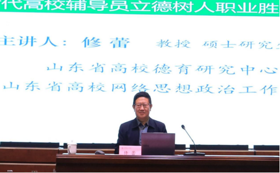 主题报告环节,山东省高校德育研究中心修蕾主任作了题为《新时代高校辅导员立德树人职业胜任力提升》的专题报告,他从“新时代高校辅导员对己四问、高校辅导员职业胜任力内涵构成、提升路径”为辅导员自身素质提升指明了方向,对今后做好学生工作、提升辅导员专业化职业化水平具有较强的指导意义。中国高等教育学会大学素质教育研究分会学术委员,河南科技大学杨国欣教授作了题为《解锁课外培养的价值密码》的专题报告,他提出课外培养的概念、价值功能及理论与实践探索等内容,为我校第二课堂建设提供了理论指导。全国高校辅导员年度人物、山西财经大学陶陶副部长作了《情理法三维度在辅导员工作中的应用》的专题报告,她提出辅导员工作的爱生情、爱岗情、爱校情,工作之“理”,工作之“法”,进一步开阔了辅导员的工作视野,拓宽了知识储备,增强了职业认同。