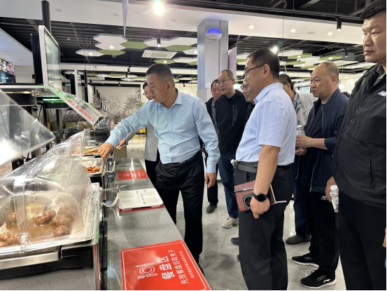 考察团一行还参观了学校智慧餐厅、六餐厅及生活服务区,现场观摩了“无感支付”“AI营养推荐”“智能炒菜机器人”等前沿技术的实际应用。