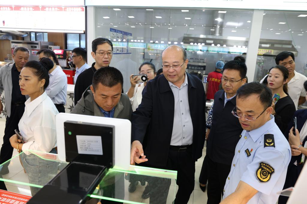 仪式结束后,与会人员一同参观了我校“智慧餐厅”和食品安全知识科普展览及“你点我检·快检零距离”服务区。市场监管人员和技术专家向同学们讲解如何辨别假冒伪劣食品、如何科学认识食品添加剂等实用知识。