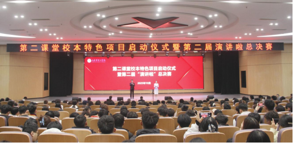 10月19日晚,我校第二届“演讲啦”总决赛在大学生活动中心三馆举行。学校特邀山东省高校德育研究中心主任、山东师范大学教授修蕾,德州市广播电视台融媒体中心副主任夏蕤担任评委,各二级学院分管学生工作的副院长、团总支书记、全体新生班级辅导员和新生班级学生干部代表现场参加了活动,其他2025级新生以线上直播形式观看比赛。