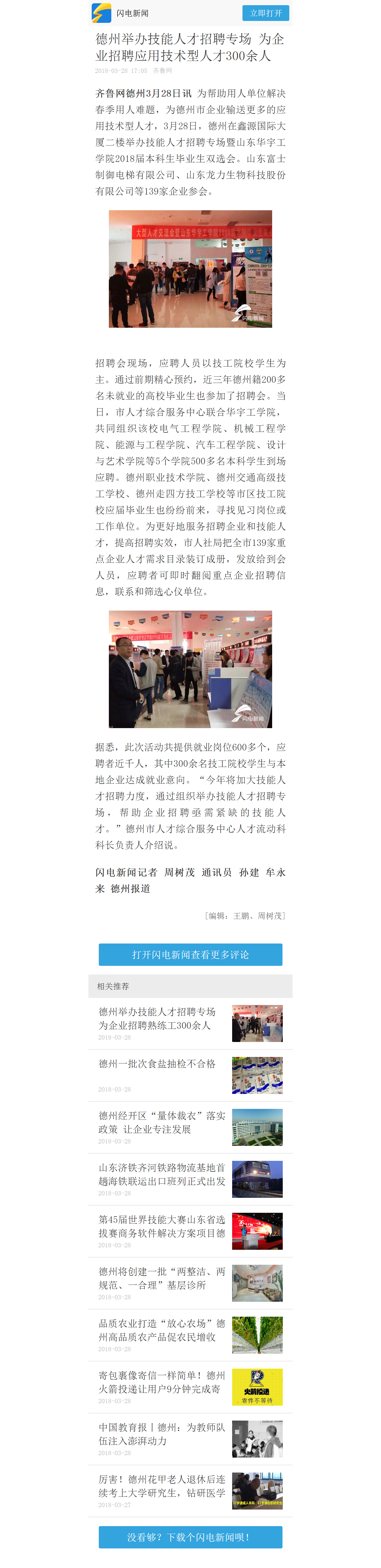 上一条: 大众网:德州举办技能人才招聘会 300余名学生达成就业意向