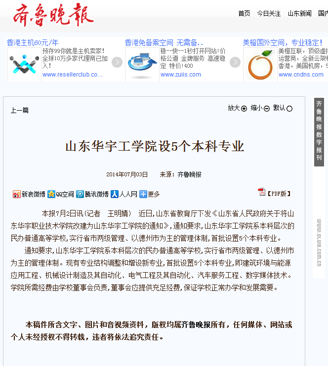 上一条: 德州新闻网:华宇工学院首批设置5个本科专业